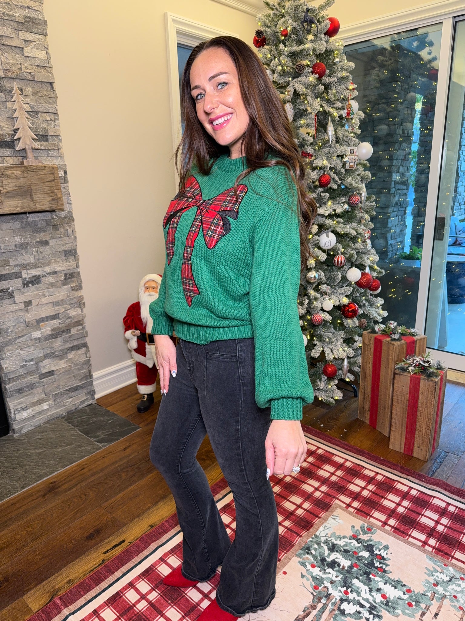 Evergreen Plaid Bow Graphic Christmas Sweater